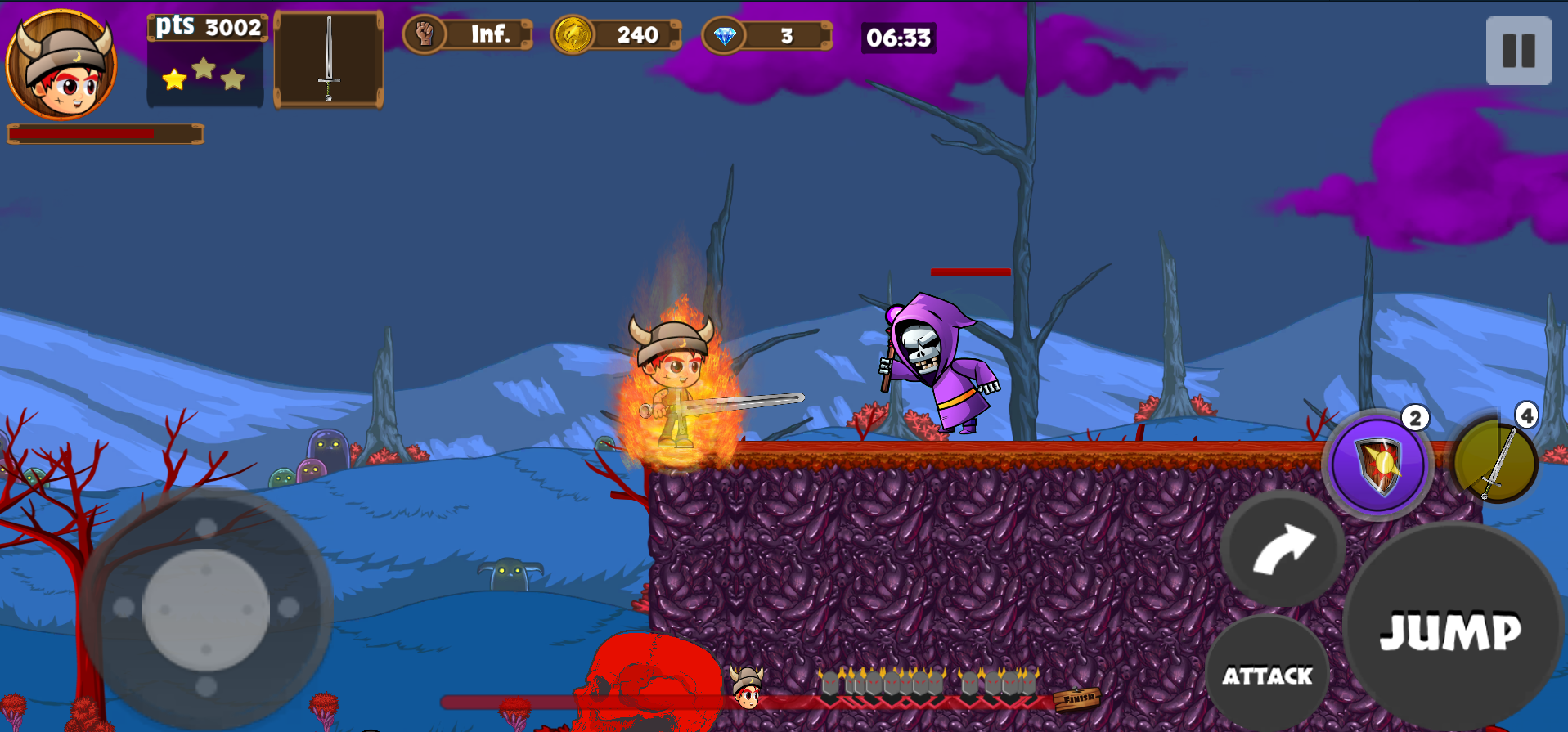 Viking Adventures es un apasionante juego que sumerge a los jugadores en la épica historia de Aesir, un valiente vikingo nacido bajo la mística luna roja, que le otorga poderes sobrenaturales. Este título combina acción, exploración y una rica narrativa que transporta a los jugadores a un mundo lleno de mitología nórdica y desafíos épicos.